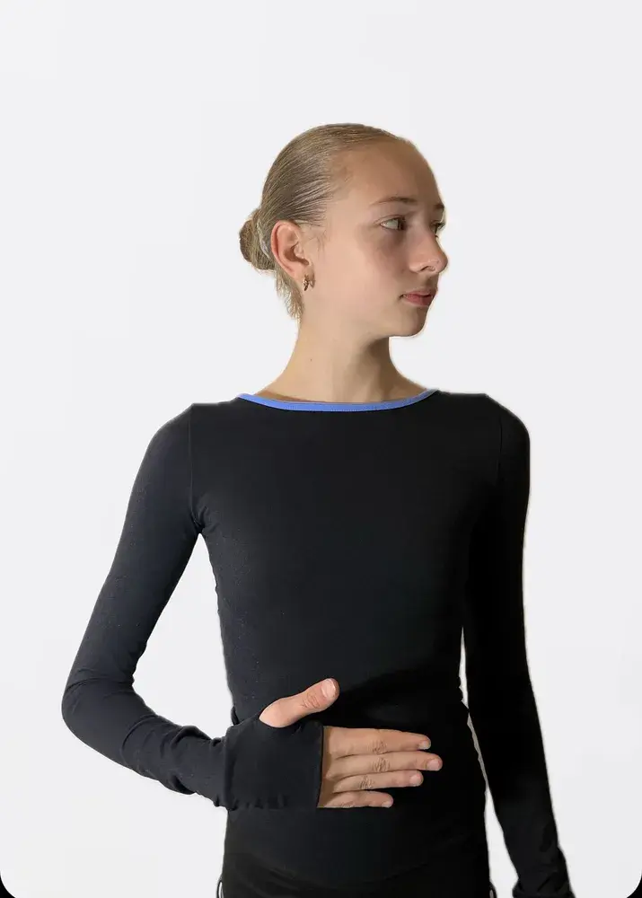 Лонгслив для фигурного катания из коллекции Colorado от Figure5 изготовлен из мягкого приятного к телу и на ощупь термобифлекса. Имеет небольшой ворс снаружи . Сохраняет тепло и соответствует всем требованиям одежды для фигурного катания. Идеально садится по фигуре и красиво подчёркивает спинку.