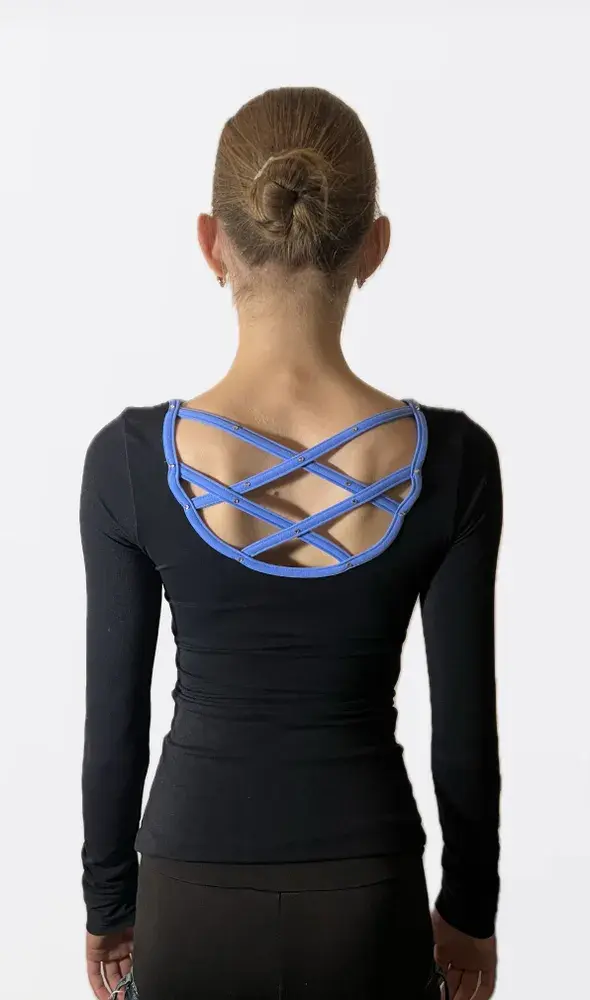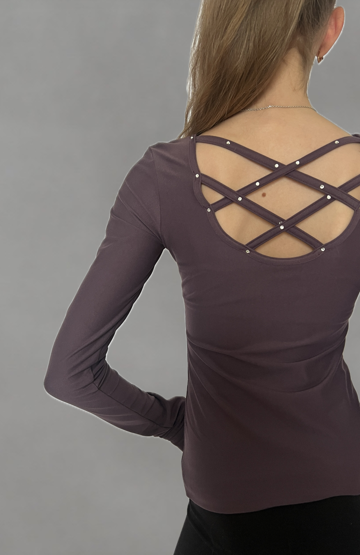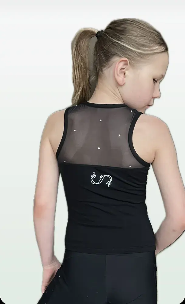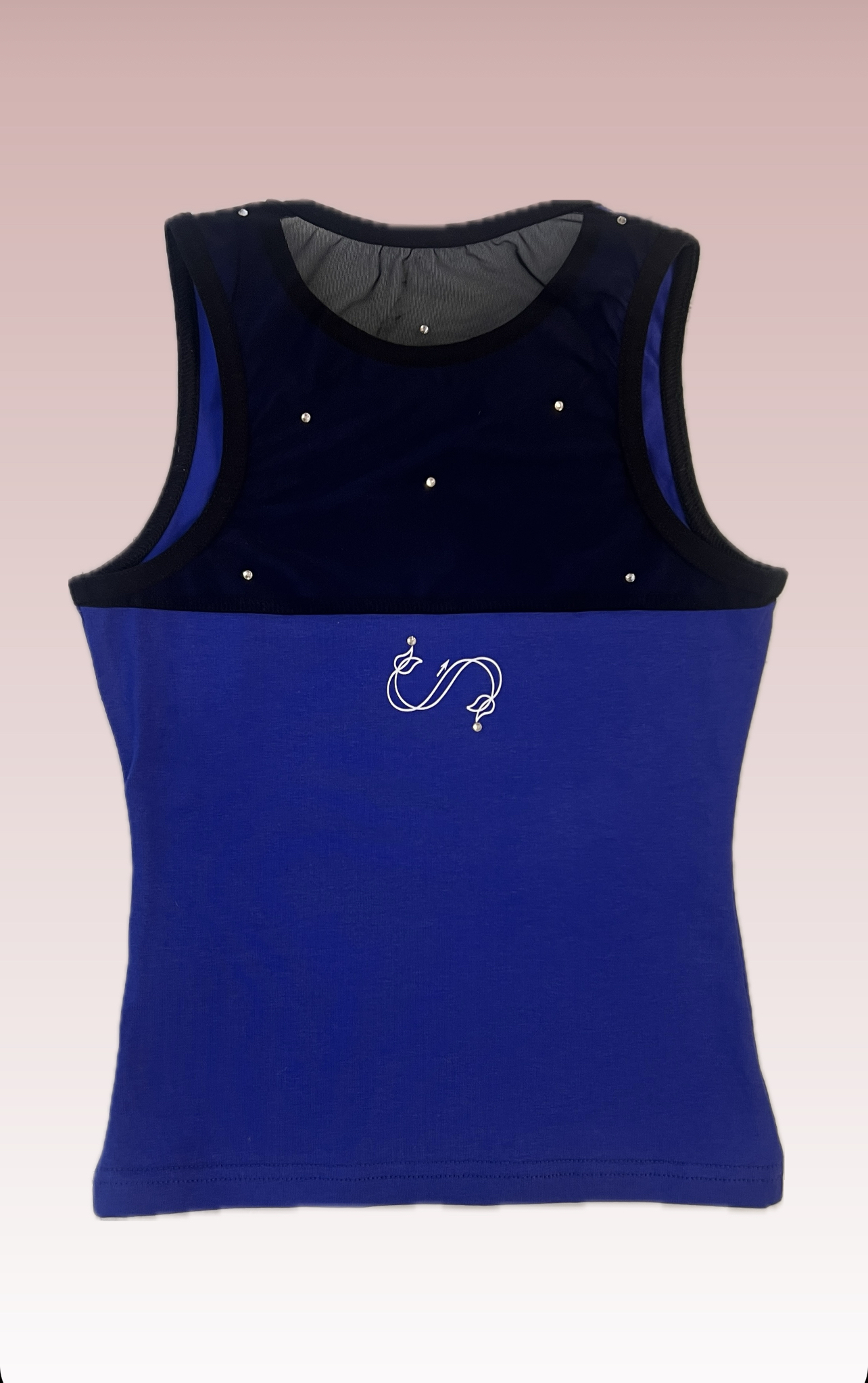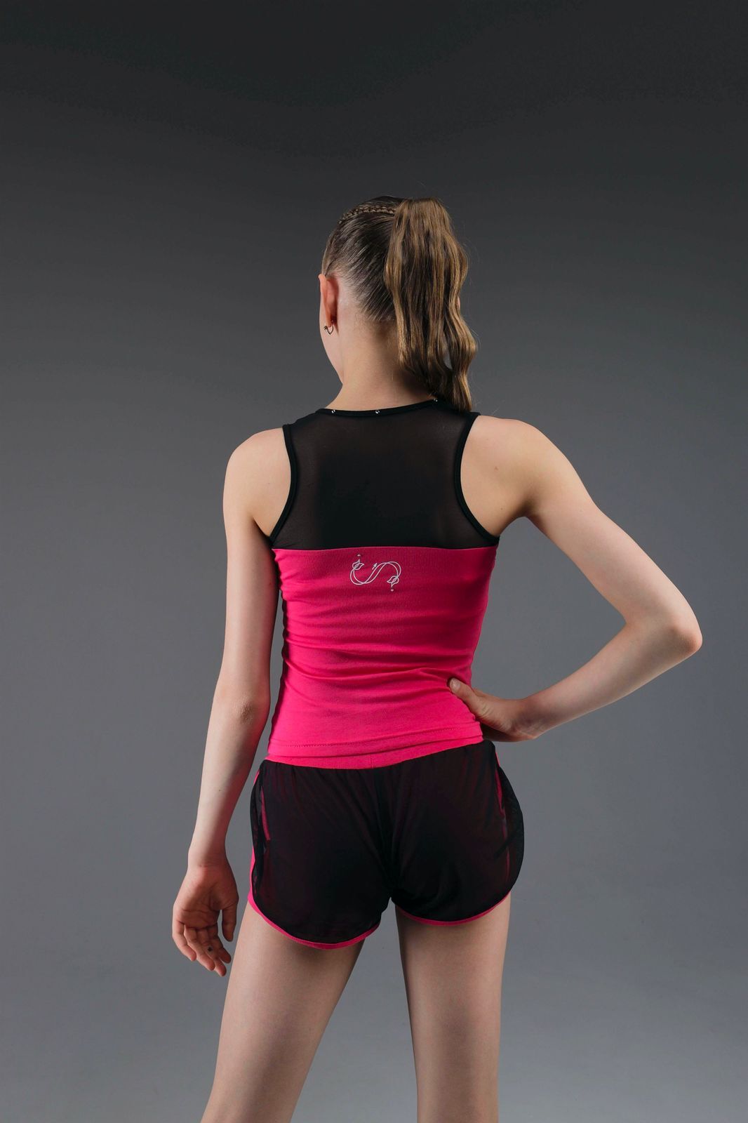 Майка для тренировок офп и хореографии. Спинка из эластичной итальянской сетки украшена стразами.