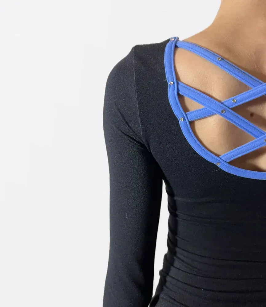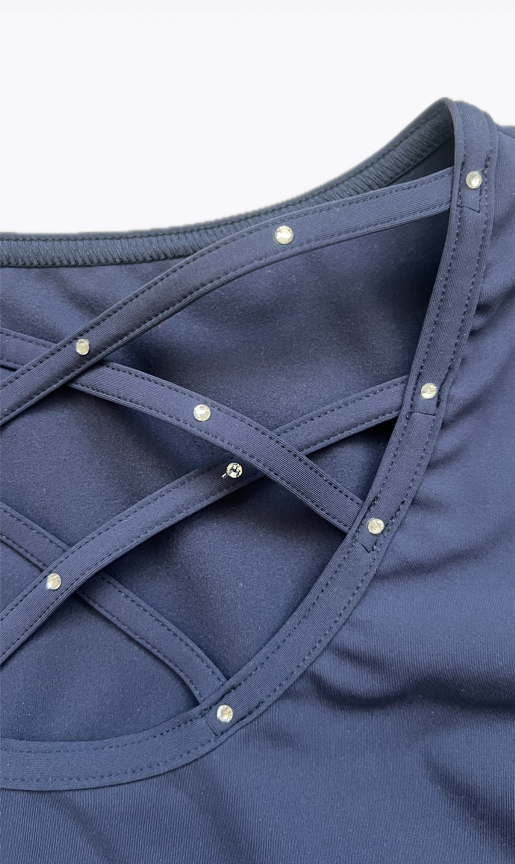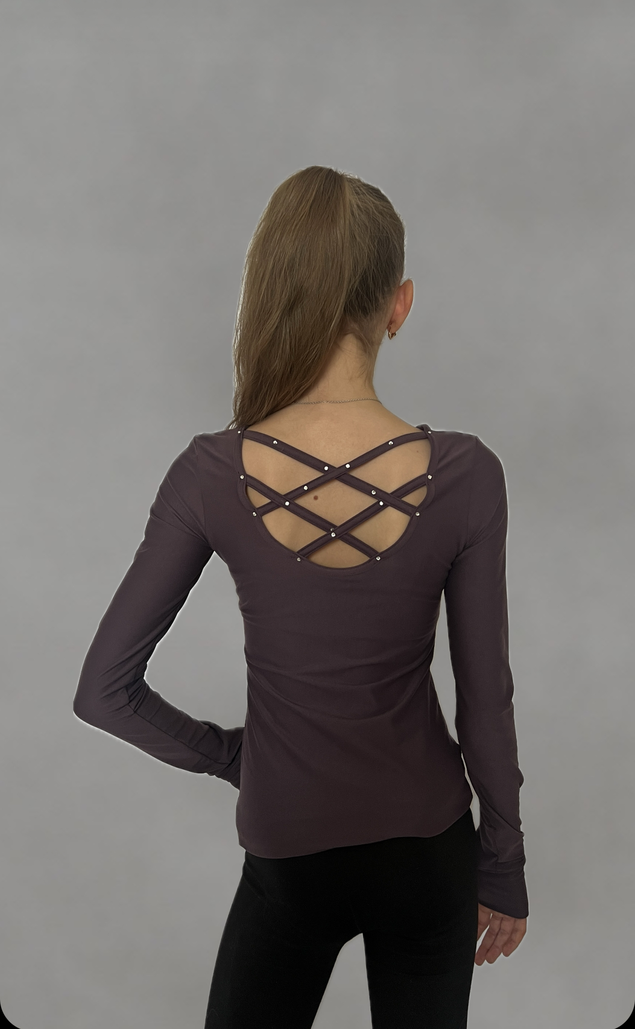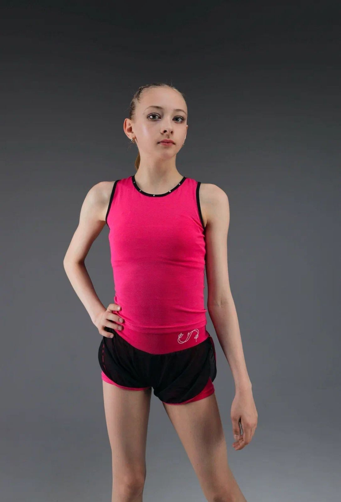 Майка для тренировок офп и хореографии. Спинка из эластичной итальянской сетки украшена стразами.